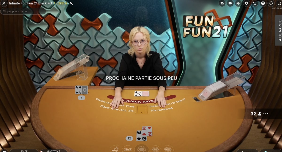 Au cours du mois de septembre 2024, le logiciel Evolution a sorti la table de black jack online avec croupier en direct baptisée Infinite Fun Fun 21 Blackjack.