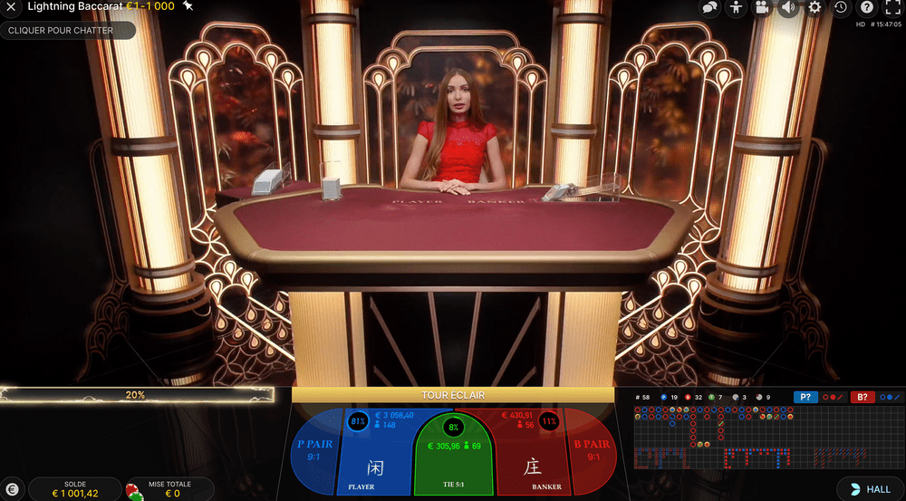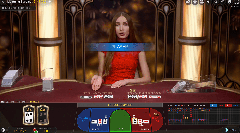 Réglée comme un métronome, la gamme Lightning s’est à nouveau étoffée l’année suivante, en 2020, avec la sortie du jeu live Lightning Baccarat. Celui-ci reprend encore une fois le fonctionnement traditionnel du classique dont il s’inspire en y ajoutant notamment un système de multiplicateurs de gains.