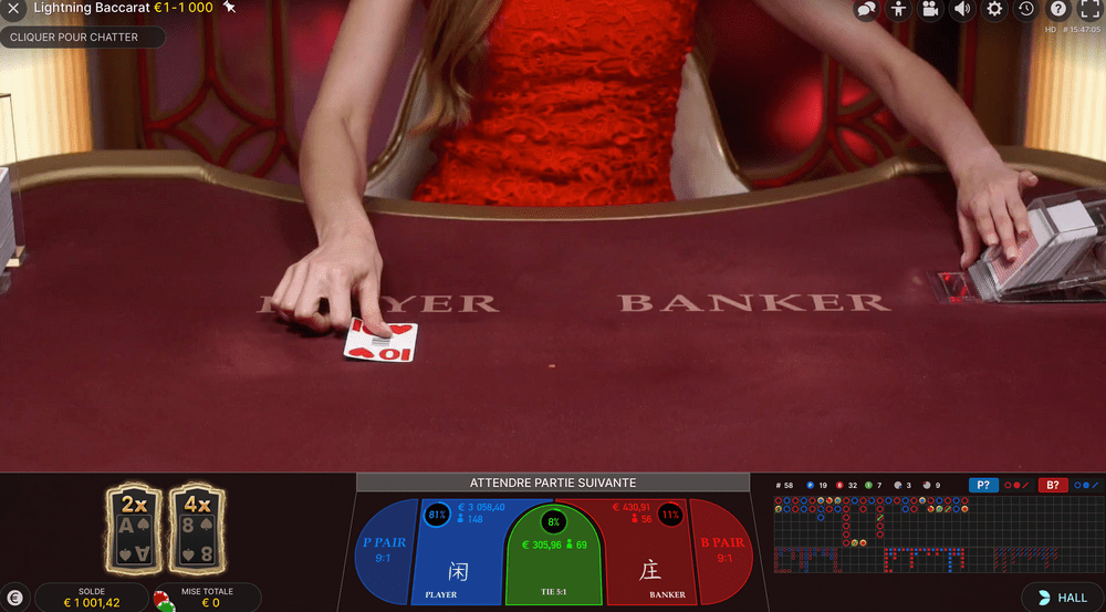 Gagnez jusqu’à 262 144 fois votre pari sur Lightning Baccarat