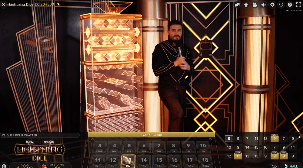 Celle-ci est composée pour l’instant de 3 titres : Lightning Roulette, Lightning Dice et Lightning Baccarat. Reprenant un fonctionnement classique, ces jeux live accrocheurs ajoutent des multiplicateurs de gains lucratifs pour nous permettre de remporter encore plus d’argent et ressentir ainsi des sensations décuplées.
