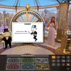 Le titre intègre Mr Monopoly, le célèbre personnage du très célèbre jeu de société édité par la firme Hasbro, partenaire d’Evolution Gaming dans le cadre de la conception de ce jeu nouvellement distingué. Pendant les parties, le personnage de Monopoly, qui est réalisé en 3D, peut apparaître pour accorder des multiplicateurs aux joueurs afin de booster leurs gains.