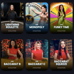 En prime, on peut compter sur le savoir-faire impressionnant des prestigieux logiciels Evolution et Pragmatic Play Live Casino.