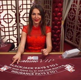 Ce sont donc toujours de belles sommes qui sont en jeu. Les parties sont retransmises en streaming live depuis les studios de l’éditeur, à Riga. La table Blackjack Fortune VIP accueille jusqu’à 7 joueurs principaux, ainsi qu’un nombre illimité de « Bets Behind », ces mises placées derrière celle de l’un des joueurs principaux.