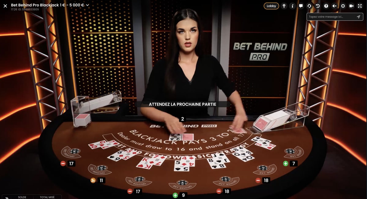 Le jeu en live Bet Behind Pro Blackjack respecte à la lettre les règles traditionnelles du black-jack.