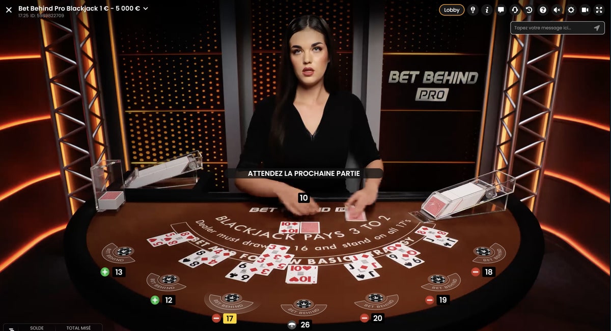 De plus, comme ce jeu en live se concentre sur les mises en bet behind, celles-ci proposent des limites beaucoup plus larges que d’habitude allant de 1€ jusqu’à 5 000€ par partie.