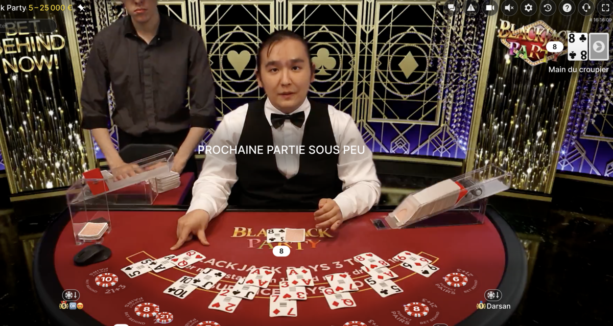 La table de blackjack en ligne phare du logiciel Evolution Gaming, Blackjack Party, a évolué avec le temps. Depuis son lancement, cette table de jeu était présentée par un croupier épaulé d'une animatrice. Mais depuis quelque temps, cette table de jeu a complètement changé son animation. En effet, cette table