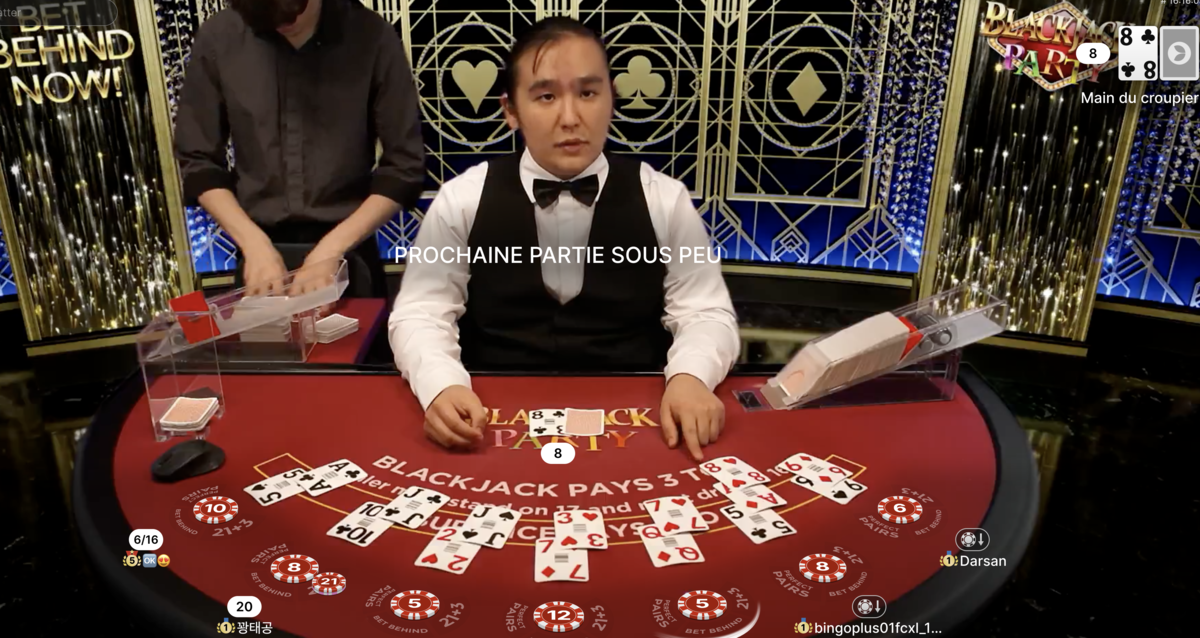 En effet, un croupier animait la table et distribuait les cartes comme dans toute table de black jack. L’autre jouait plus le rôle d’animateur.