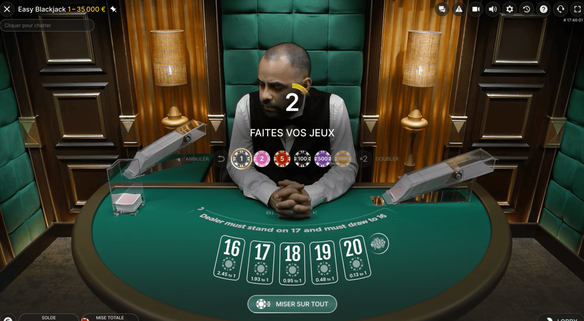 La principale originalité de la table en direct Easy Blackjack réside dans le fait qu’on n’a pas à choisir entre différentes options de jeu.
