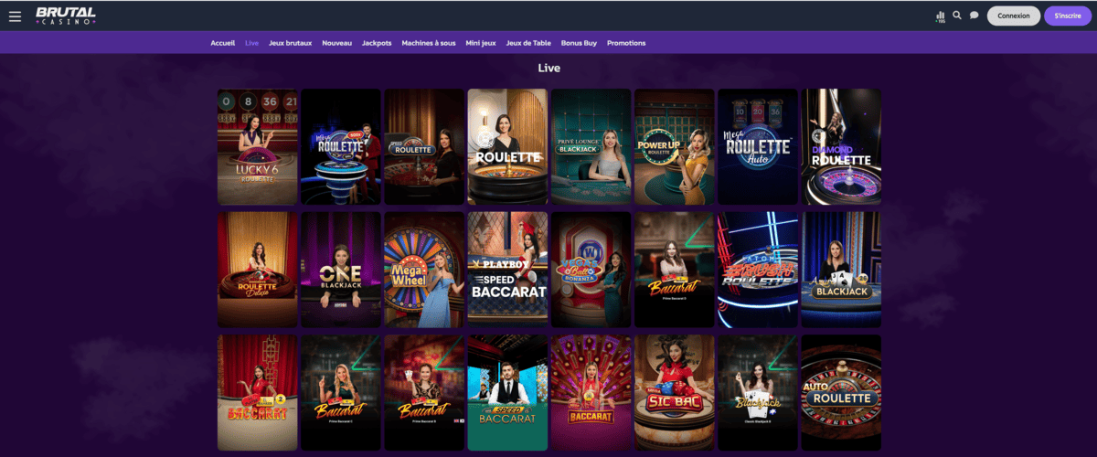 La bonne nouvelle est qu’ils ne sont pas les seuls à proposer des jeux avec croupiers en direct sur Brutal Casino qui peut aussi compter sur les éditeurs Eeze et Skywind Live.