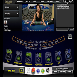 Live casino adapté aux férus de jeux de table, Fairway Casino offre des tables de roulette, baccarat et blackjack le tout filmés par des webcams retransmettant en direct des croupières en chair et en os.