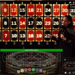 Ces tables de roulette en ligne sont filmées par des caméras HD du logiciel Evolution. Tout est retransmis en streaming en temps réel. Les joueurs en ligne placent leurs jetons sur le tapis vert en même temps que les clients présents autour de ces tables. Un pur régal !