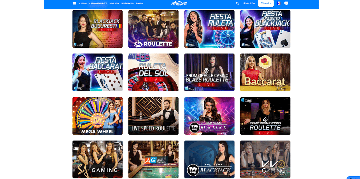 Un éventail de jeux avec croupiers en direct impressionnant sur Millionz