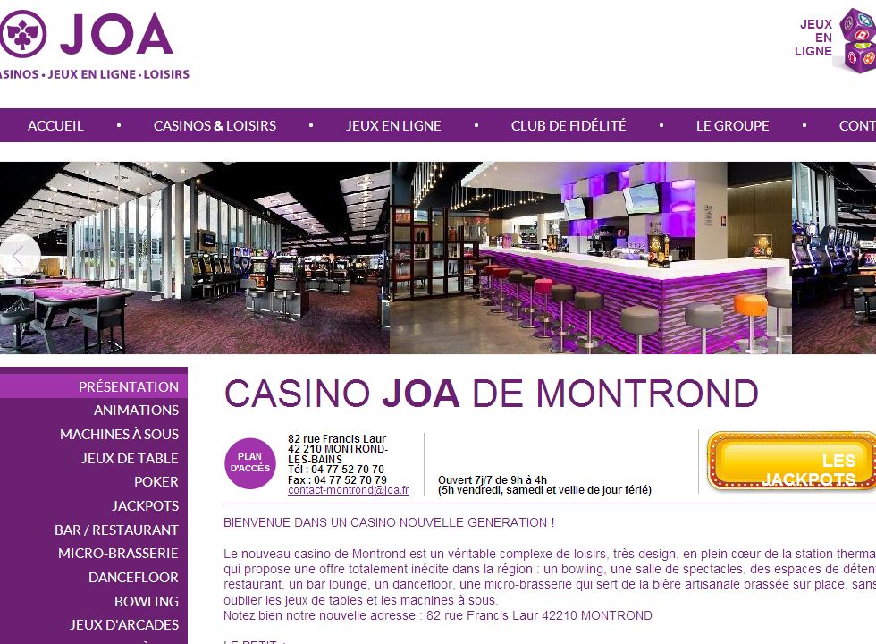 Parmi les complexes les plus célèbres, il faut citer le Joacasino La Siesta d’Antibes, le Joacasino de Montrond-les-Bains et le Joacasino d’Uriage.