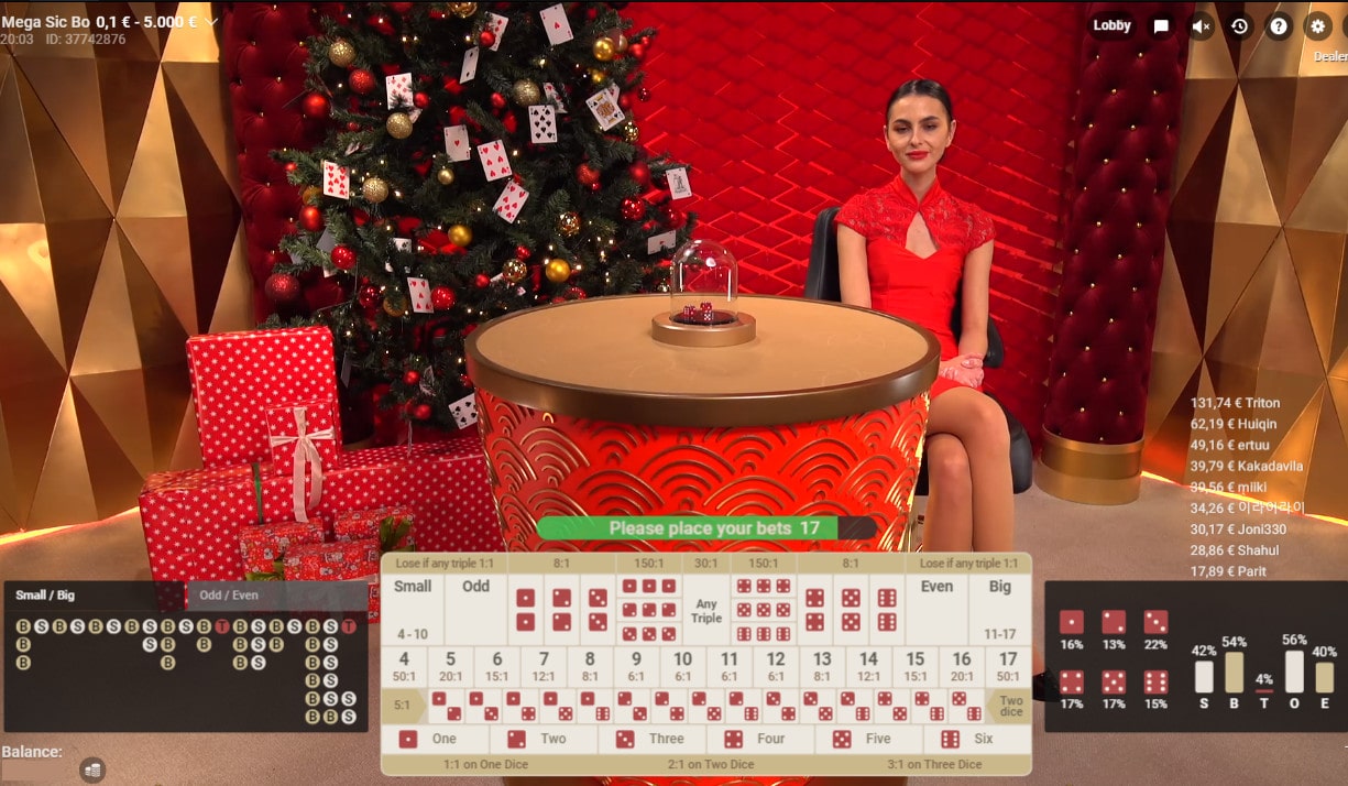 Encore jeune, l’éditeur de jeux en direct Pragmatic Play Live Casino propose quand même une large gamme de jeux en direct plutôt variée. Ainsi, on peut compter sur la présence d’une trentaine de titres en tout avec du blackjack, du baccarat et de la roulette. Il y a aussi une table dédiée au sic bo et la roue de la fortune Mega Wheel.