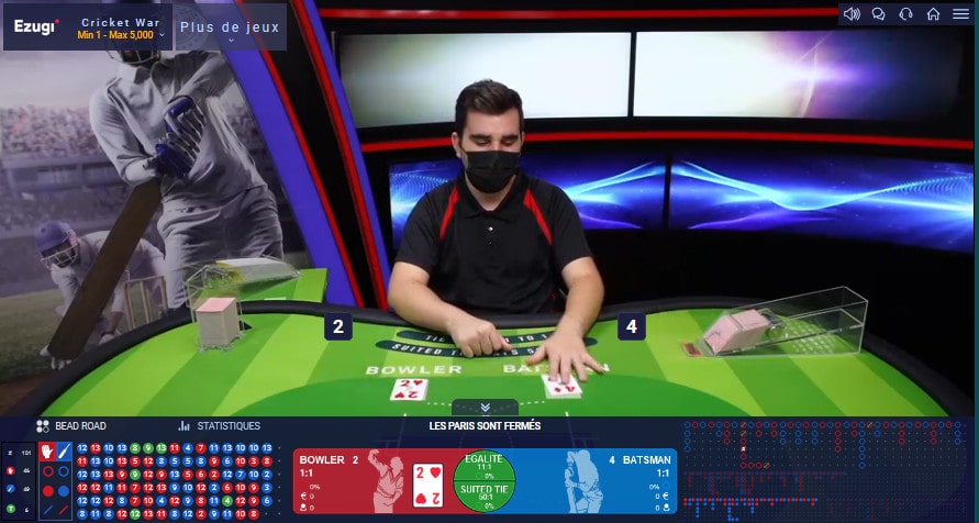 La principale originalité de Cricket War ne réside finalement pas trop dans ses règles du jeu qui ressemblent étrangement au dragon tiger. Elle est plutôt à cherche au niveau de son ambiance. En effet, ce jeu en direct rend hommage au cricket. C’est ainsi que le tapis de jeu représente la pelouse d’un stade et que la décoration du studio met en avant l’image d’un joueur. Bref, les amateurs sont plongés dans une atmosphère soignée qui leur rappelle délicieusement leur discipline sportive favorite.