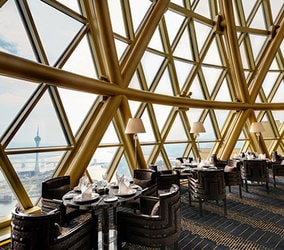 Après sa mort en 2018, la direction de Robuchon Dôme a été confiée à Julien Tongourian. Ce lieu, parfait pour les diners, est situé au 43e étage et présente une architecture futuriste, totalement en verre. Les visiteurs ont donc une superbe vue de toute la ville pendant qu’ils dégustent les somptueux plats proposés. Le Robuchon Dome partage la même cave que The Eight, et propose donc, lui aussi une carte de vins très diversifiée avec plus de 16 800 étiquettes.