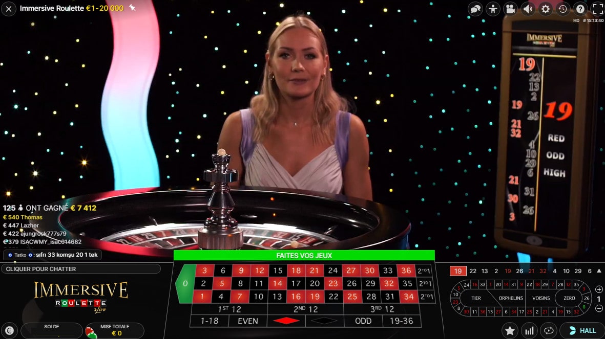 L’Immersive Roulette (ou Roulette Immersive pour les francophones) est une table filmée par 17 caméras HD.