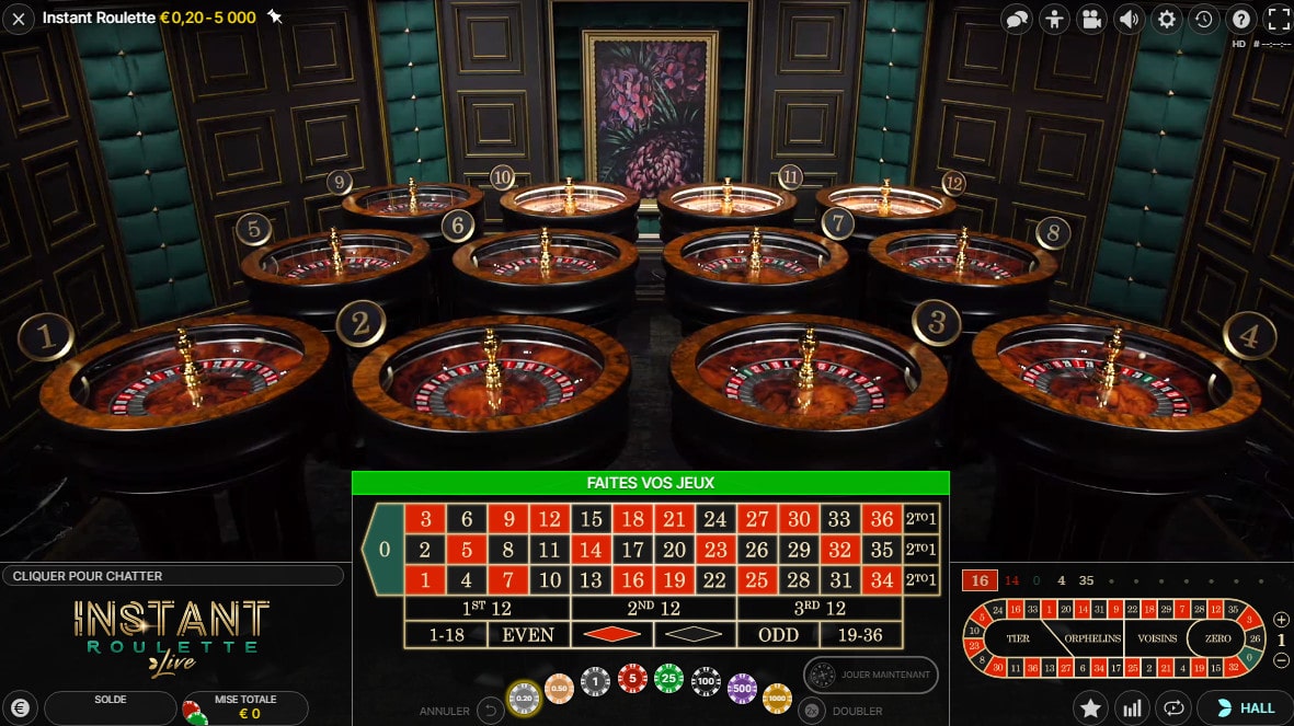 Nous avons décidé de vous proposer qu’un échantillon de tables de roulette en direct de casinos terrestres et de studios.
