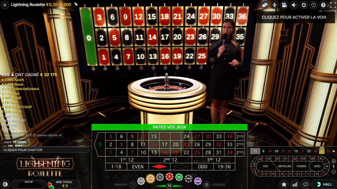 Croupiers en Direct a rédigé une revue complète sur la Lightning Roulette que nous vous recommandons de lire ici !