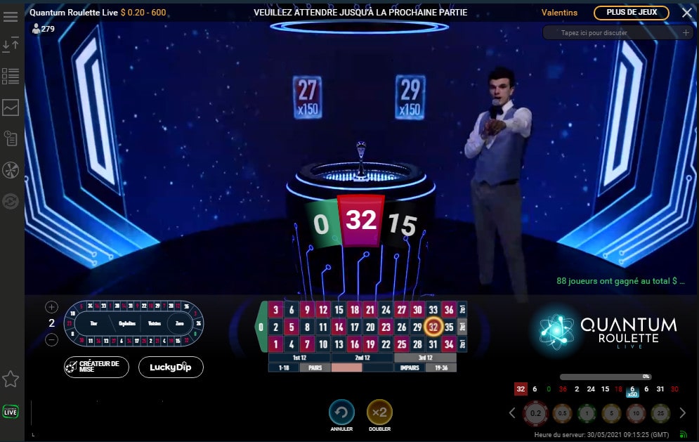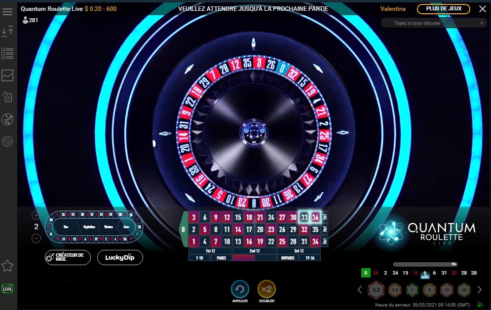 Jusqu’à 500 fois notre mise à gagner sur Quantum Roulette