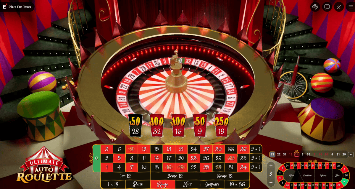 Au niveau de la décoration du studio, on doit bien avouer que le logiciel Ezugi a frappé fort en nous plongeant délicieusement dans une esthétique agréable à l’œil qui s’inspire du cirque.