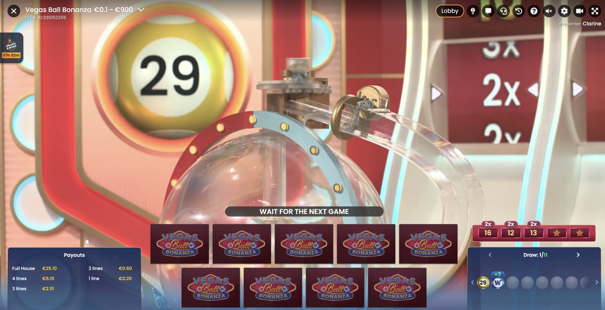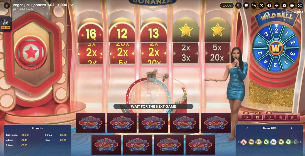 Néanmoins, ce n’est qu’au cours du mois de juillet 2023 qu’il a lancé sa toute première loterie avec croupier en direct. Il s’agit de Vegas Ball Bonanza que nous allons détailler ci-dessous.